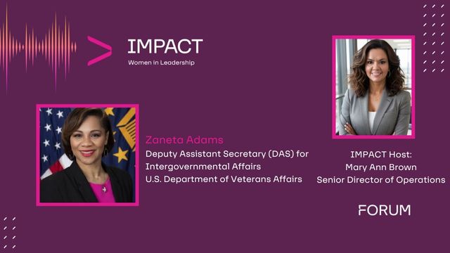 In this episode of the IMPACT Women in Leadership podcast, we are honored to welcome Zaneta Adams, Deputy Assistant Secretary for Intergovernmental Affairs at the U.S. Department of Veterans Affairs. Zaneta shares her inspiring journey in public service, focusing on her commitment to advocating for veterans and enhancing intergovernmental collaboration. She discusses the challenges women face in leadership roles, the importance of building strong partnerships, and how effective communication can drive meaningful change.