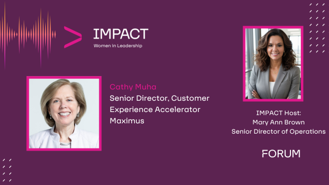 In today’s episode of the IMPACT Women in Leadership Podcast, host Mary Ann Brown sits down with Cathy Muha, Senior Director of Customer Experience at Maximus and a trailblazer in the healthcare sector. Cathy’s impressive 37-year career at the National Cancer Institute (NCI) is a testament to her unwavering commitment to public health, cancer care, and mentorship.