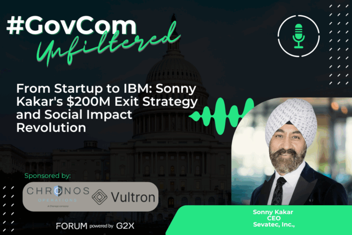 In this powerful episode of #GovCom Unfiltered, host Alexa Tsui sits down with Sonny Kakar, the visionary entrepreneur who founded Sevatec in 2003 and led it through an incredible journey – from scrappy startup to private equity sale in 2020, and ultimately to IBM acquisition in 2022.